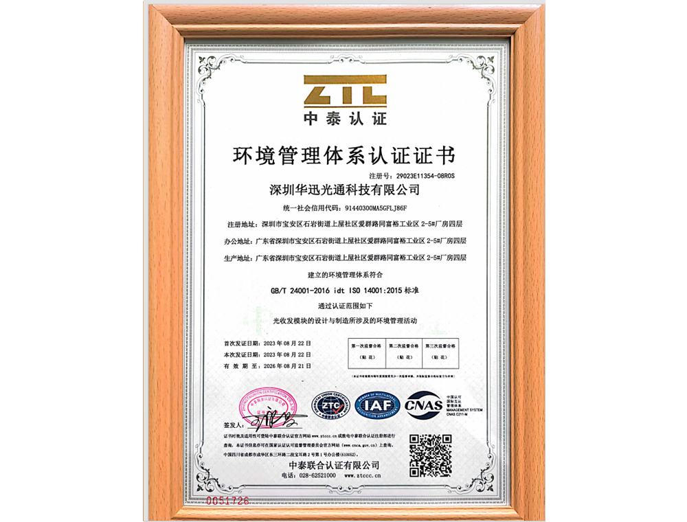 深圳华迅光通科技有限公司(以下简称"华迅光通")成立于2013年,主要从事光通信领域内高速光模块的设计开发及制造,是一家专注高速光模块整体解决方案制造商。可为客户提供定制化的设计与服务,以满足客户特殊产品的需求。